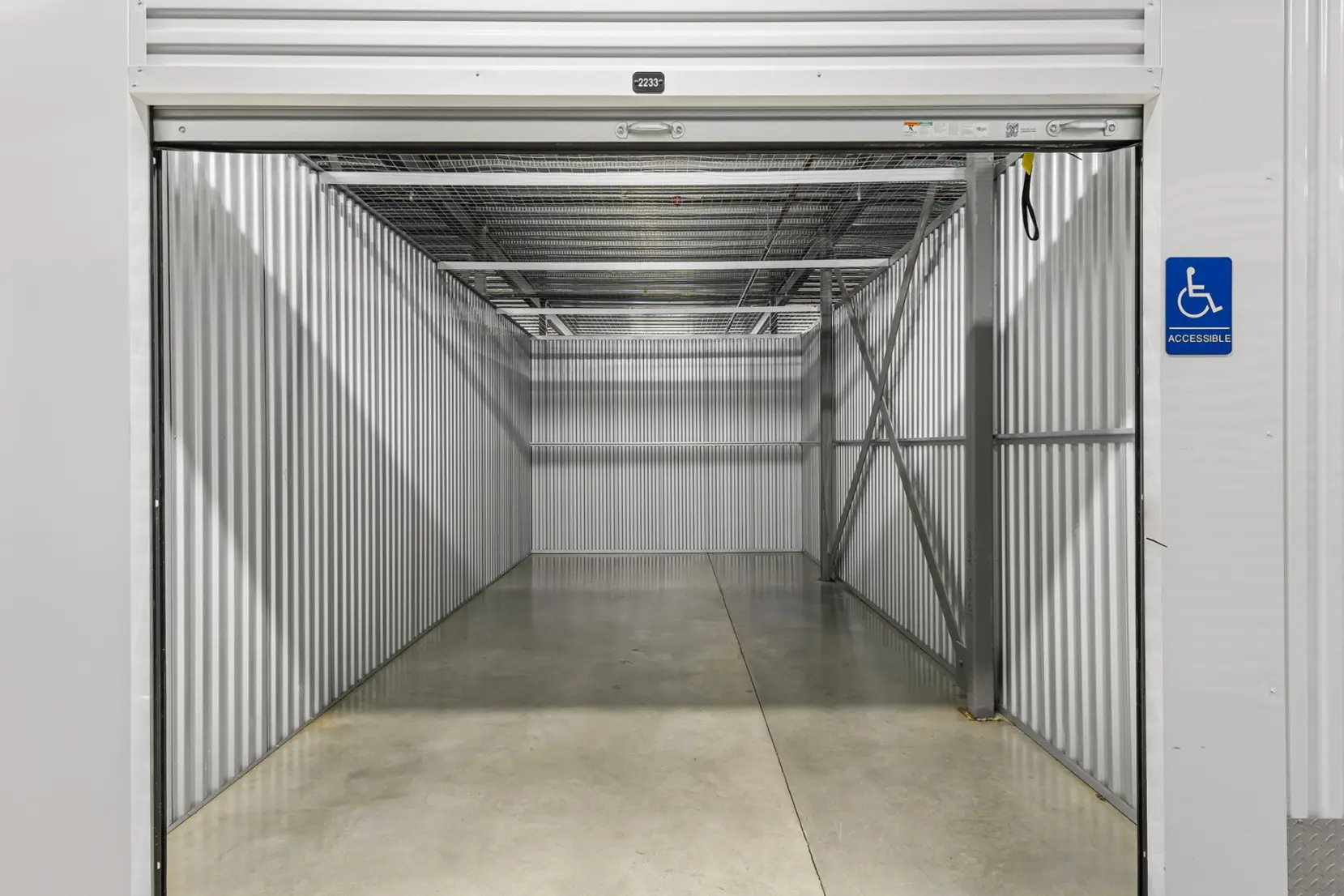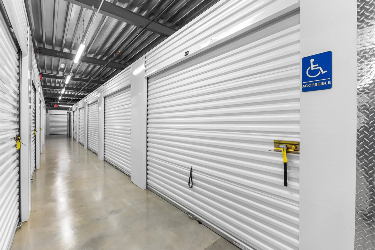 IndoorStorage unit is inside building, accessible via a security access system.