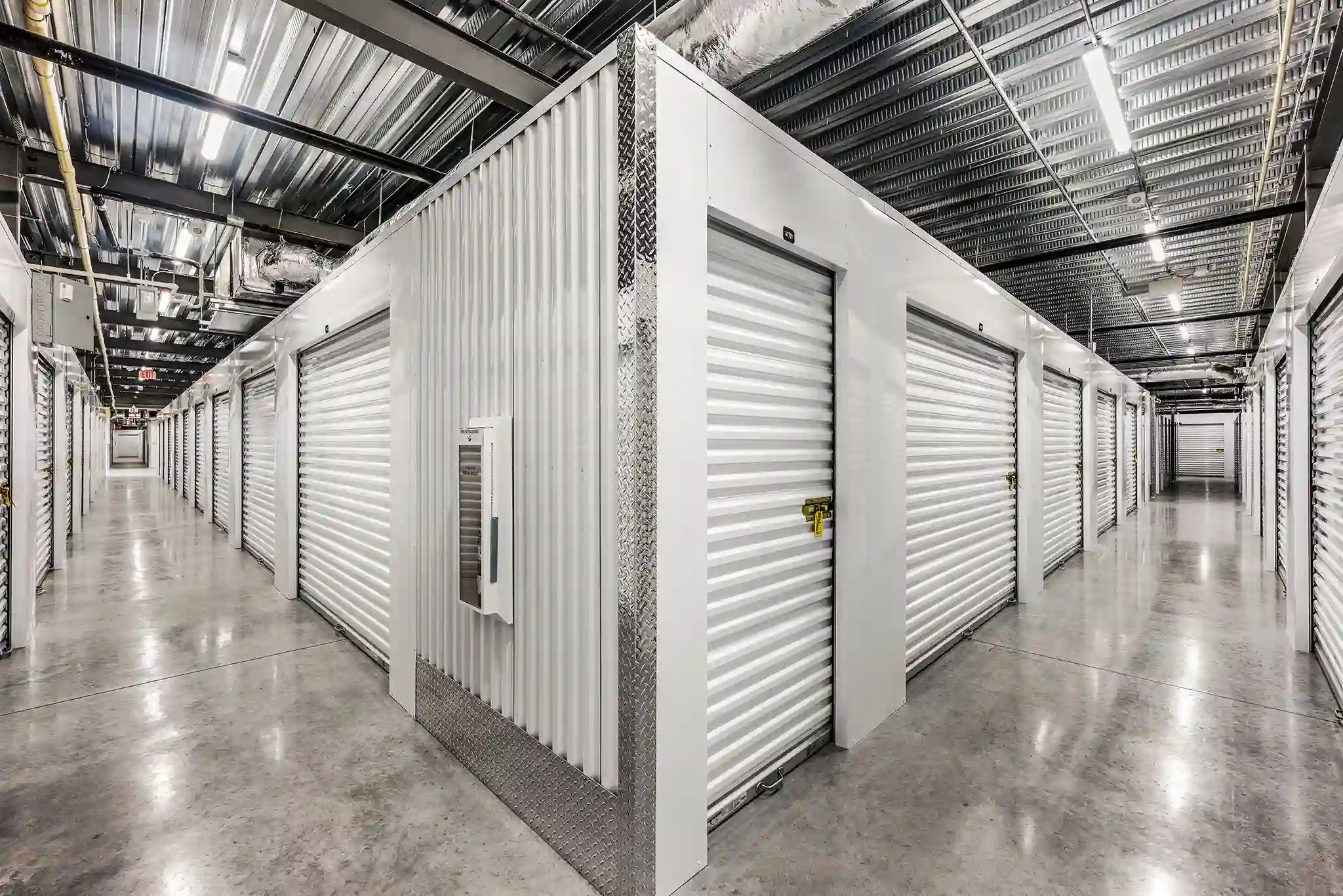 IndoorStorage unit is inside building, accessible via a security access system.