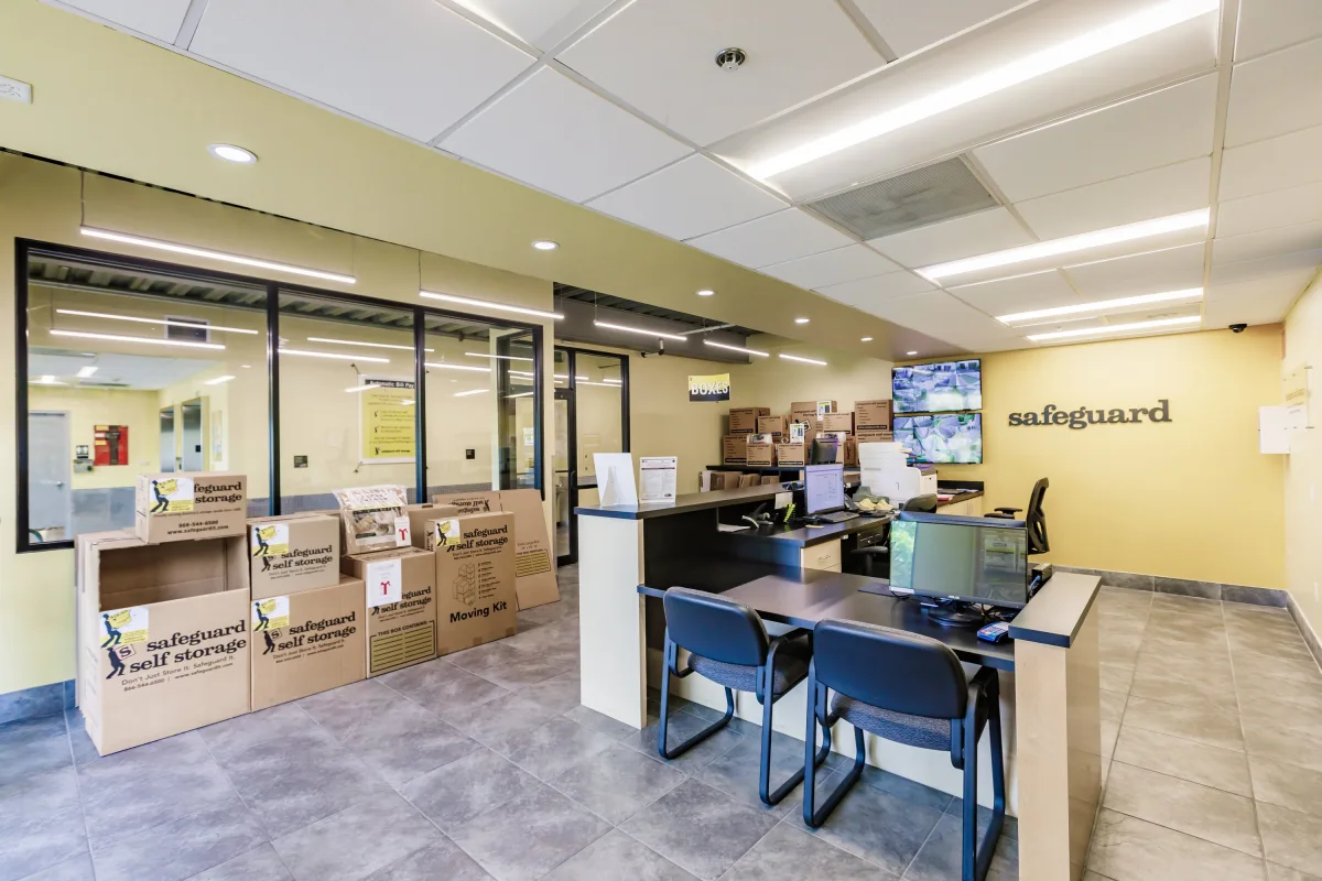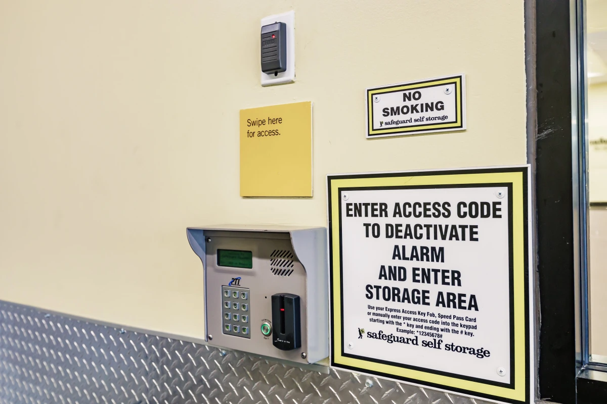 *Although no security system is 100% effective against crime, our self-storage facilities are designed with security in mind. Our goal is to provide our valued customers with peace of mind when storing their belongings at Safeguard Self Storage. Safeguard Self Storage utilizes computer-controlled security access systems with personalized access codes or handsfree Bluetooth access, motion sensor cameras and enhanced lighting to help maintain a safe and secure environment for all stored belongings.