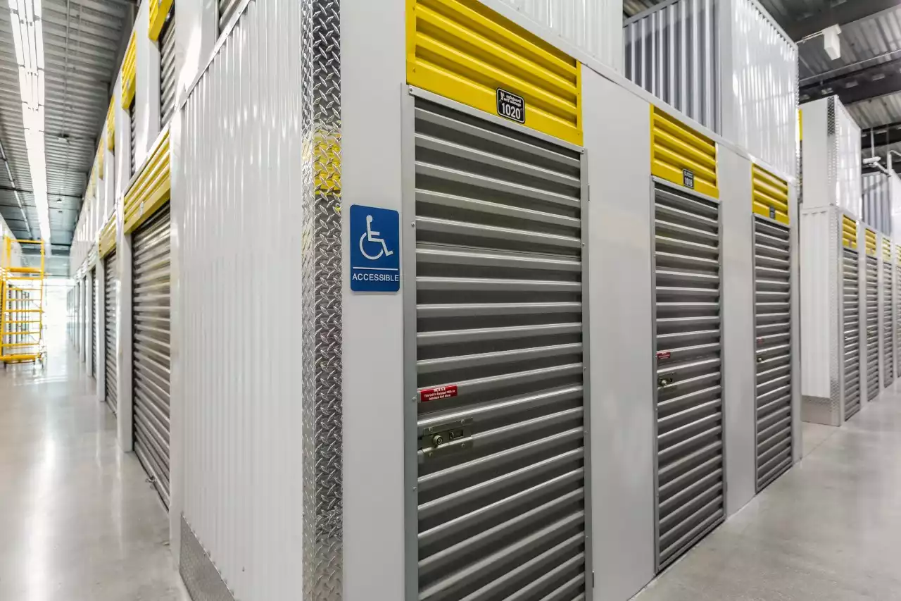IndoorStorage unit is inside building, accessible via a security access system.