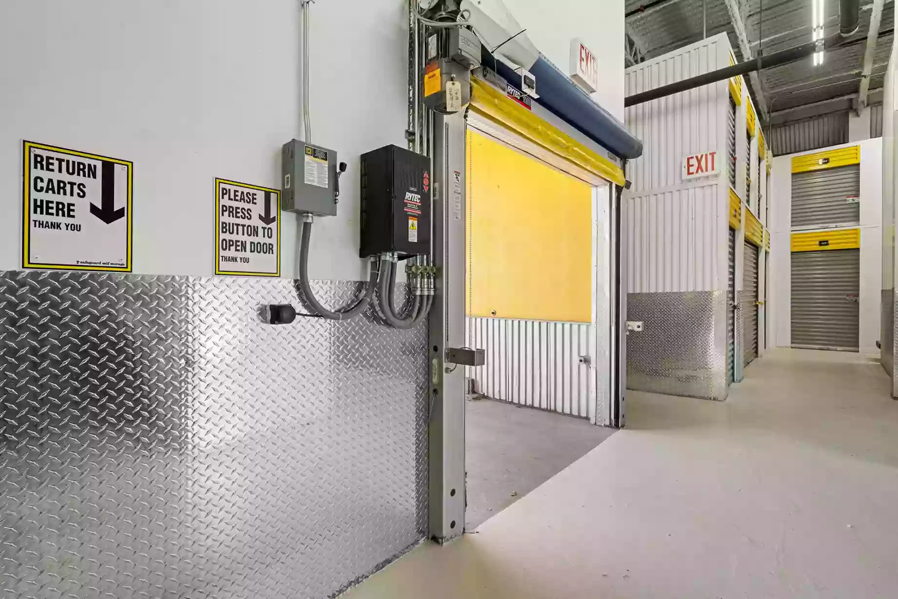 IndoorStorage unit is inside building, accessible via a security access system.