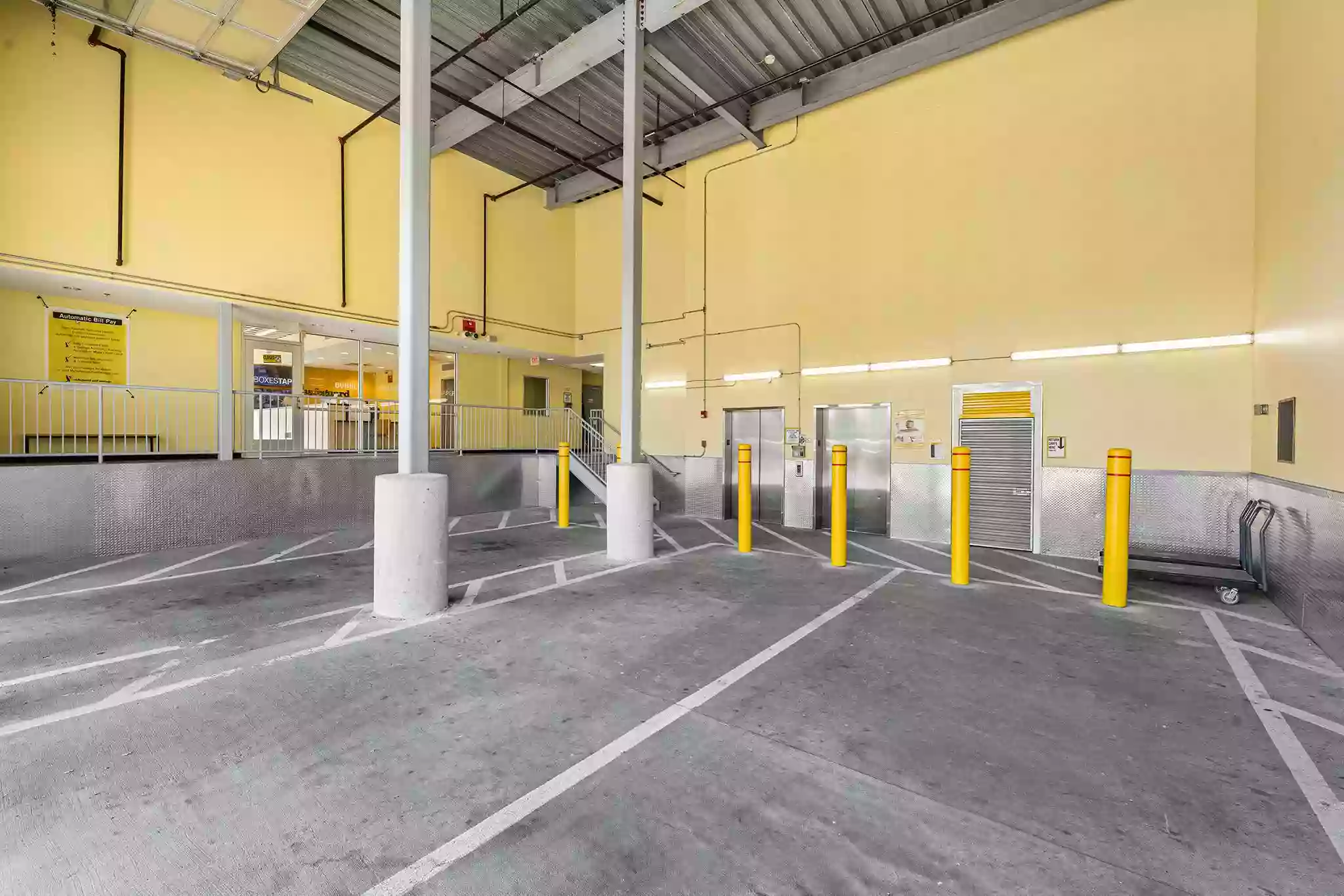 This storage facility features a drive-in loading area to protect you and your items from the elements while loading and unloading your storage unit. We have moving carts available for free use while onsite to easily move your items to your storage locker. If your storage space is on an upper floor, our extra-large elevators make it easy to bring all of your items upstairs.