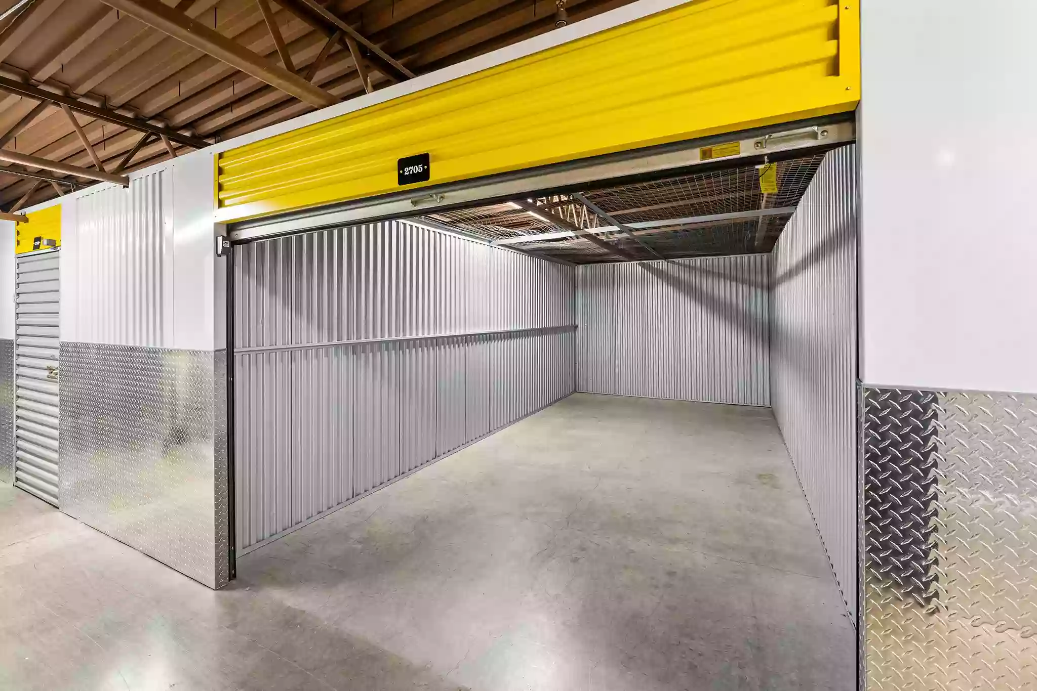 There are two standard storage unit doors, the swing door and the roll-up door. Most of the smaller units—such as lockers that range from 5′ x 5′ to 5′ x 10’—will have either swing doors or roll-up doors, which both have about a 3-foot opening. For larger units—such as 10′ x 10′, 10′ x 15′, 10′ x 20′, and bigger—they will have roll-up doors that have about an 8-foot opening.